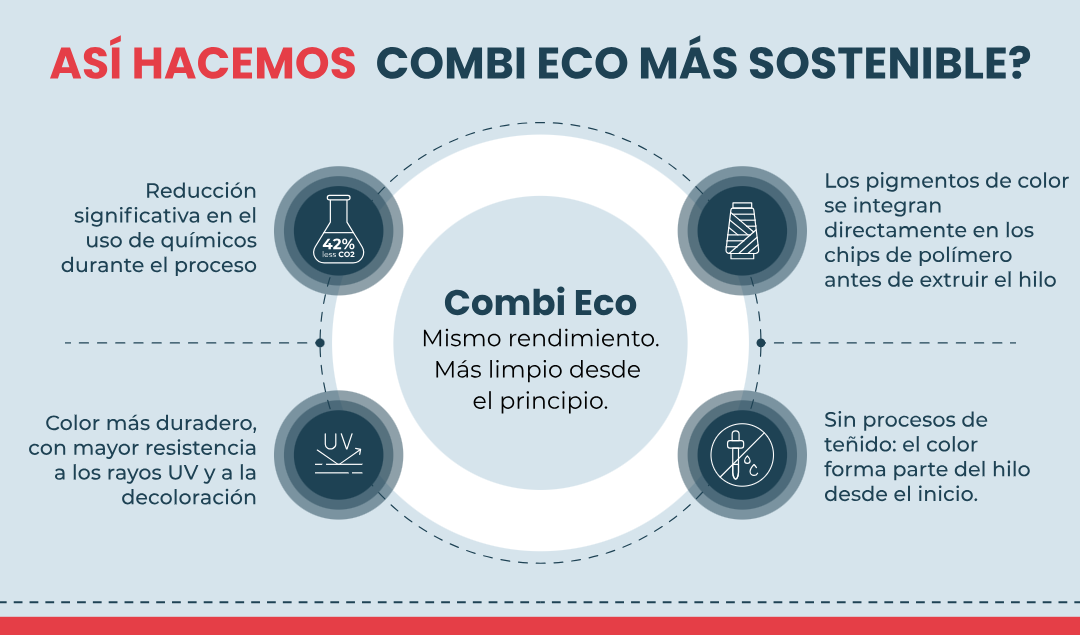 FabricAir presenta Combi Eco, una nueva versión más sostenible de su conocido tejido Combi para conductos textiles de climatización. Este nuevo material ofrece el mismo rendimiento fiable que los clientes esperan, pero se produce mediante un proceso más limpio y responsable gracias a la tecnología dope dyed yarn.