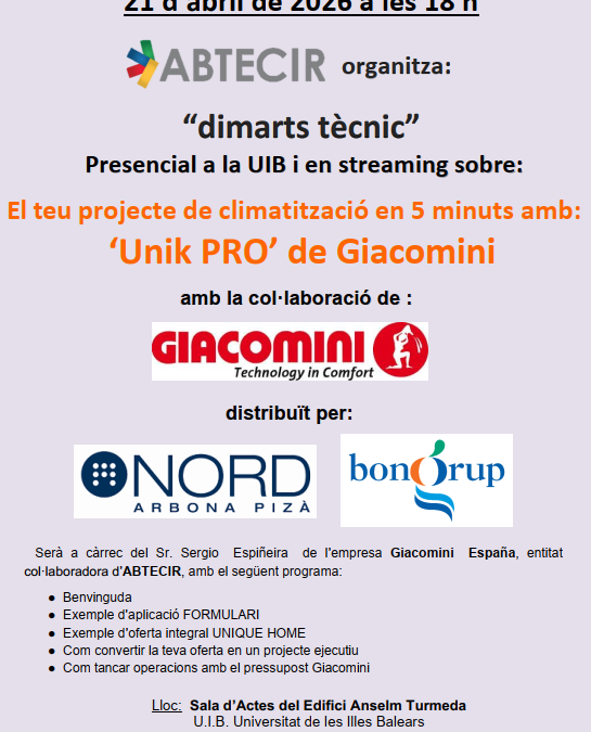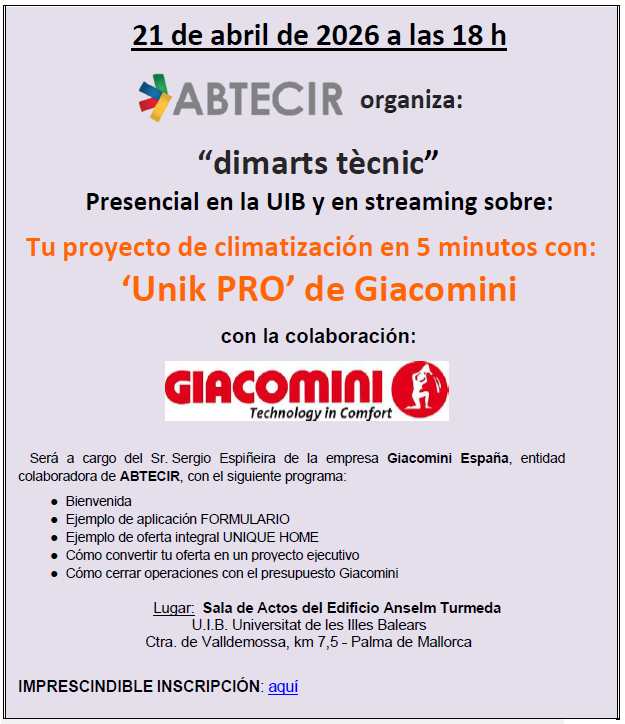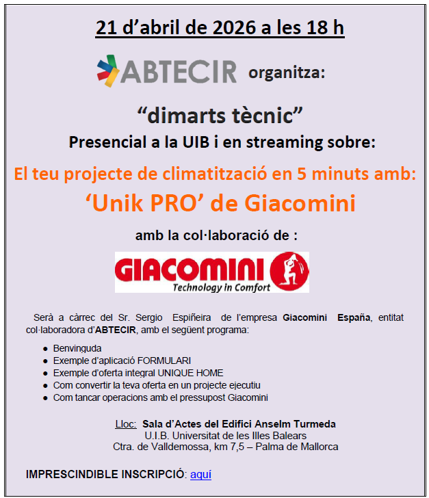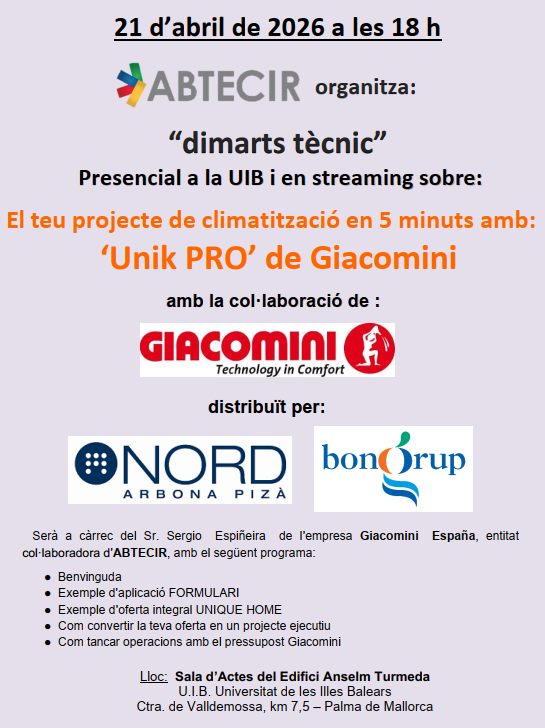 Serà a càrrec del Sr. Sergio Espiñeira de l’empresa Giacomini España, entitat col·laboradora d’ABTECIR, amb el següent programa: