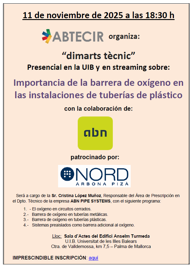 Serà a càrrec de la Sra. Cristina López Muñoz, Responsable de l’Àrea de Prescripció en el Dpto. Tècnic de l’empresa ABN PIPE SYSTEMS, amb el següent programa: